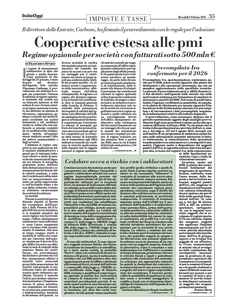 Il provvedimento pubblicato il 3 febbraio 2026 dall’Agenzia delle Entrate avvicina il regime opzionale a quello ordinario e stabilisce la procedura di verifica dei requisiti richiesti dalla norma per esercitare lβopzione.