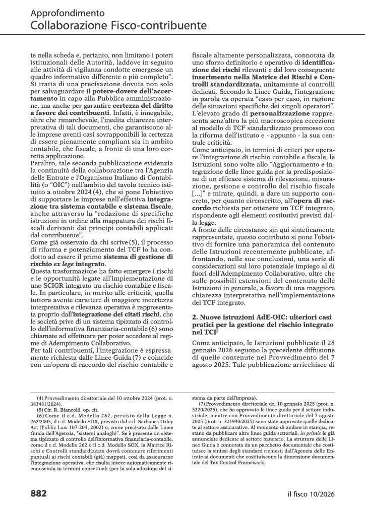 πŸ’‘Su 𝐒π₯ 𝐟𝐒𝐬𝐜𝐨 𝟏𝟎/πŸπŸŽπŸπŸ”, Rosa Biancolli commenta le casistiche affrontate, svolgendo alcune considerazioni sul loro valore interpretativo e interrogandosi su cosa Γ¨ ancora possibile fare per integrare efficacemente il governo duale dei rischi contabili e fiscali.